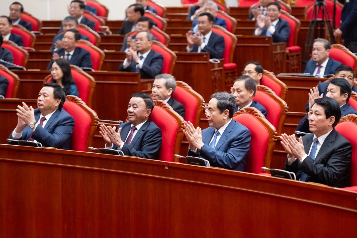 Tổng Bí thư Tô Lâm và Chủ tịch Quốc hội Trần Thanh Mẫn tại phiên bế mạc Hội nghị Trung ương 13 (Ảnh: Phạm Thắng).