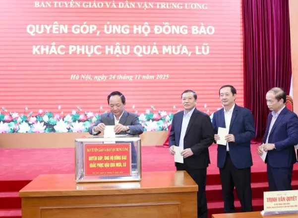 Chiều nay, Ban Tuyên giáo và Dân vận Trung ương đã tổ chức quyên góp, ủng hộ đồng bào các địa phương khắc phục hậu quả do mưa, lũ.