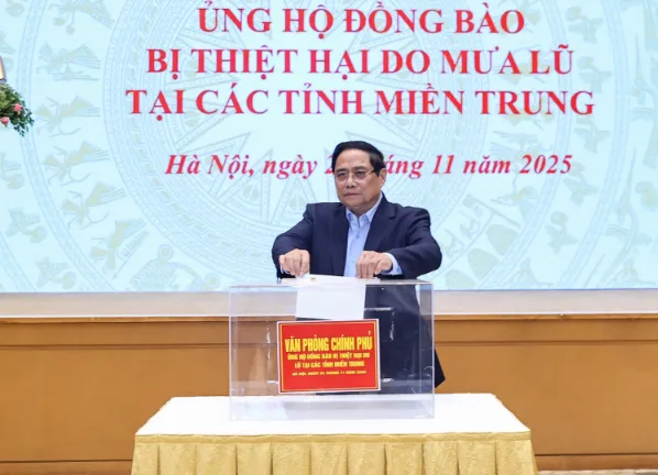 Chiều nay, tại trụ sở Chính phủ, Thủ tướng Phạm Minh Chính cùng lãnh đạo Chính phủ và tập thể Văn phòng Chính phủ đã ủng hộ đồng bào bị thiệt hại do bão lũ gây ra.