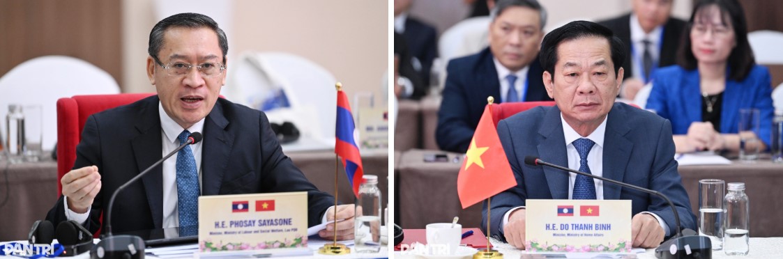 Bộ trưởng Bộ Nội vụ Việt Nam Đỗ Thanh Bình và Bộ trưởng Bộ Lao động và Phúc lợi xã hội Lào Phosay Sayasone đồng chủ trì hội nghị.