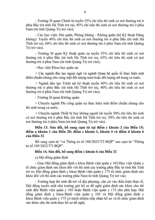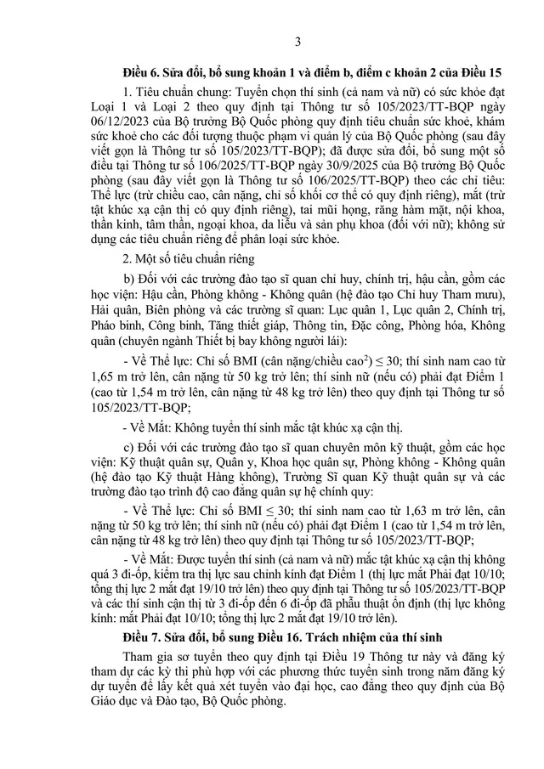 Toàn văn dự thảo Thông tư sửa đổi, bổ sung Quy định và hướng dẫn thực hiện công tác tuyển sinh vào các trường Quân độ