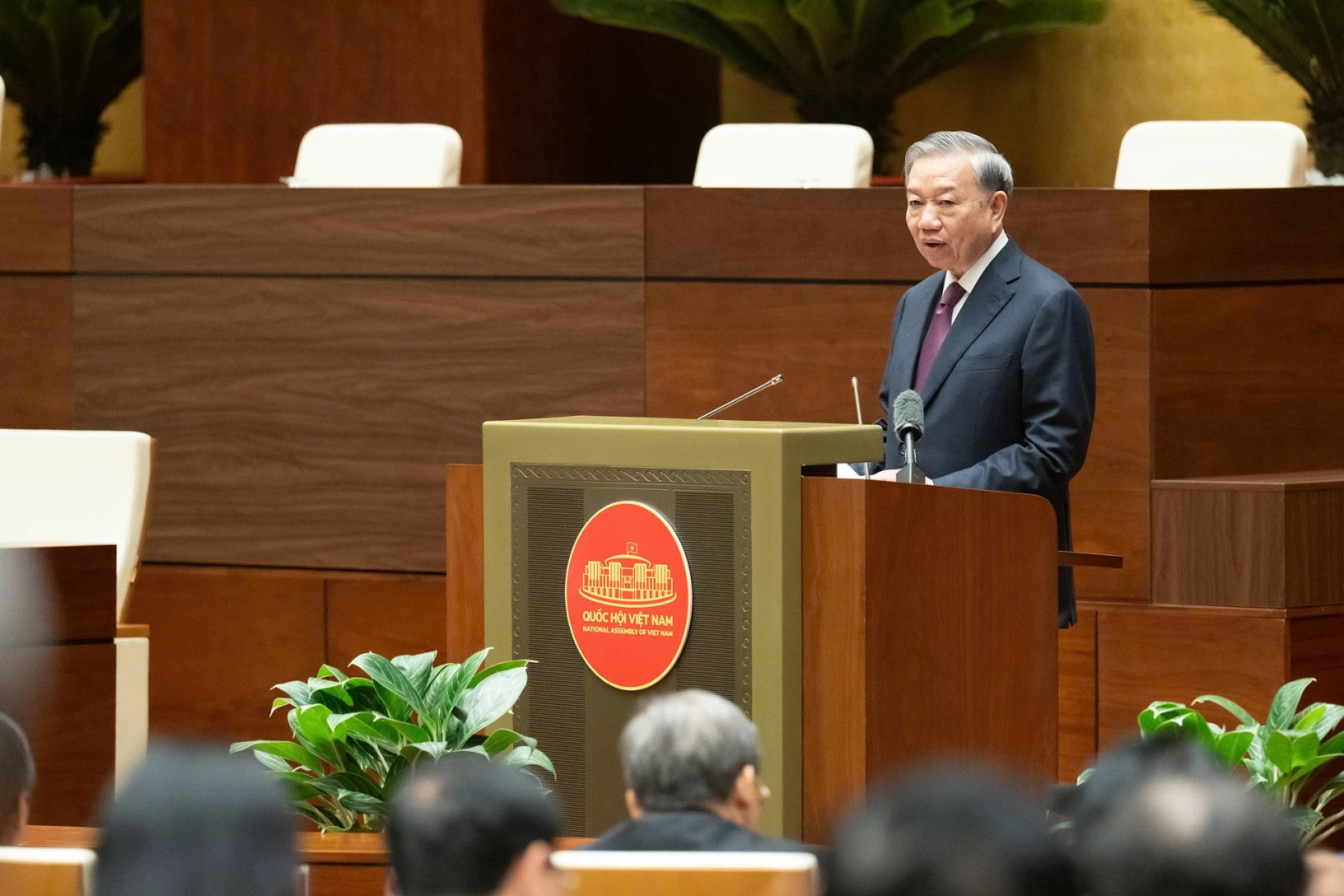 "Một nền kinh tế muốn tăng trưởng cao, bền vững và có khả năng bứt phá, không chỉ vận hành trên nền tảng một nguồn lực đơn nhất, càng không thể đặt toàn bộ gánh nặng phát triển lên vai Nhà nước", Tổng Bí thư, Chủ tịch nước phân tích.