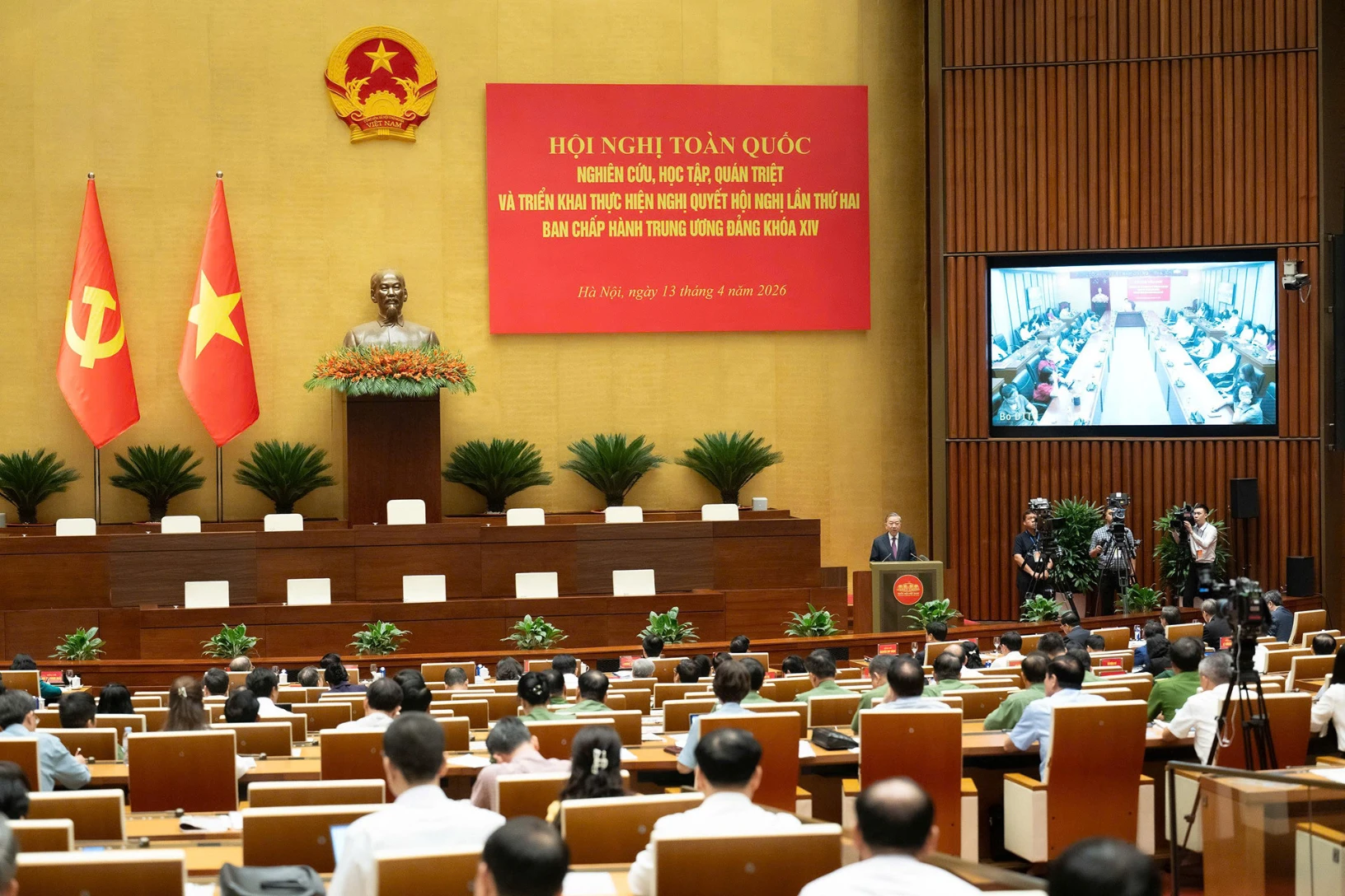 Hội nghị toàn quốc nghiên cứu, học tập, quán triệt và triển khai thực hiện Nghị quyết Hội nghị lần thứ hai Ban Chấp hành Trung ương Đảng khóa 14 do Bộ Chính trị, Ban Bí thư tổ chức diễn ra vào sáng nay (13/4).