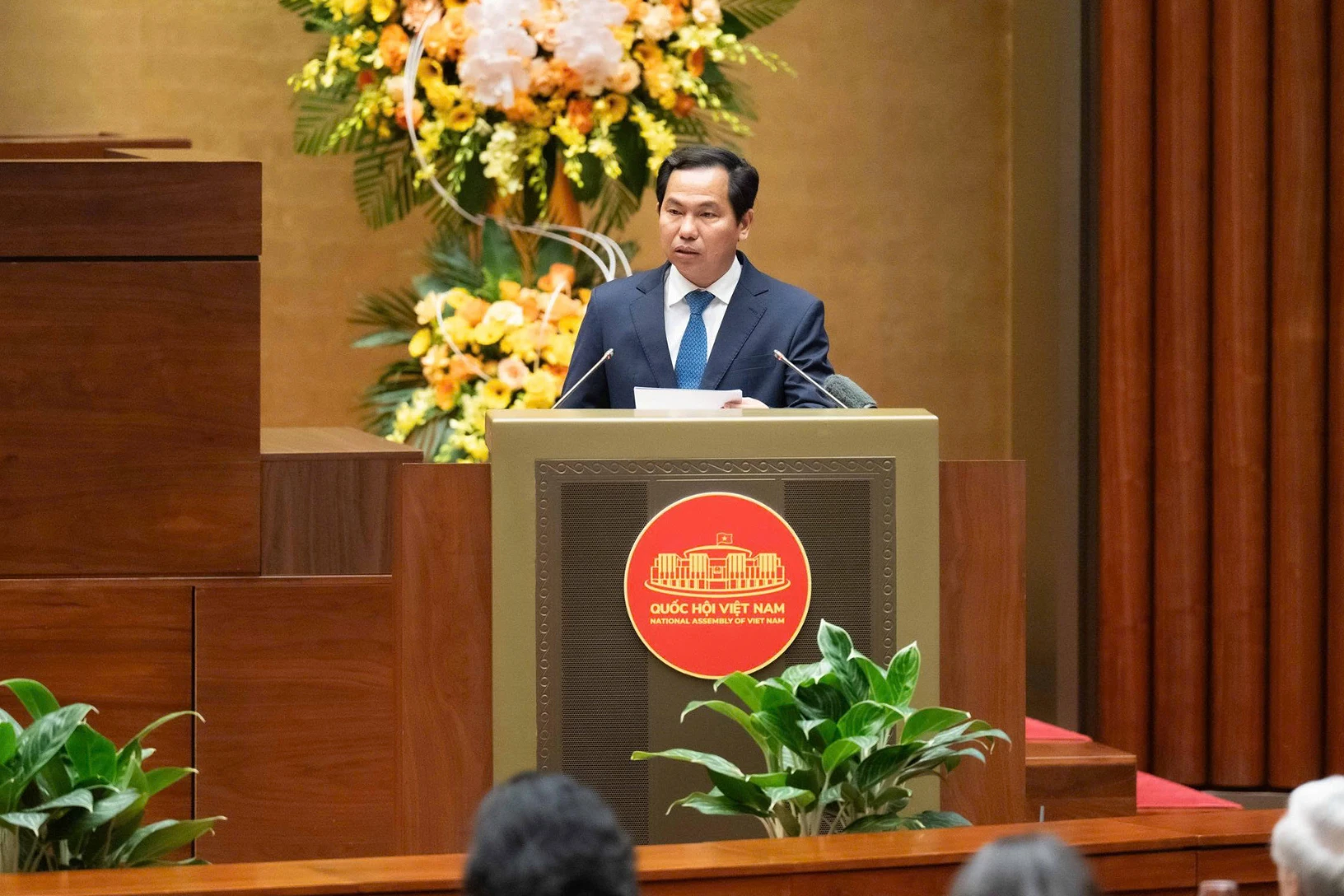 Chủ tịch Quốc hội nhấn mạnh, đây là dấu mốc quan trọng trong tiến trình phát triển của đất nước ta, đang đẩy mạnh hoàn thiện Nhà nước pháp quyền xã hội chủ nghĩa thực sự của nhân dân, do nhân dân và vì nhân dân; tiếp tục đổi mới tổ chức bộ máy, vận hành mô hình chính quyền địa phương hai cấp; ứng dụng mạnh mẽ công nghệ thông tin, chuyển đổi số, trí tuệ nhân tạo vào mọi mặt của đời sống xã hội.