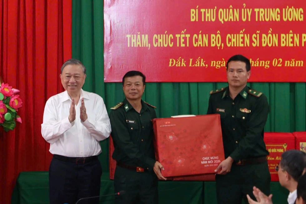 Tổng Bí thư Tô Lâm chúc Tết và tặng quà đến cán bộ, chiến sĩ Đồn Biên phòng Ea H'leo (Ảnh: Uy Nguyễn).