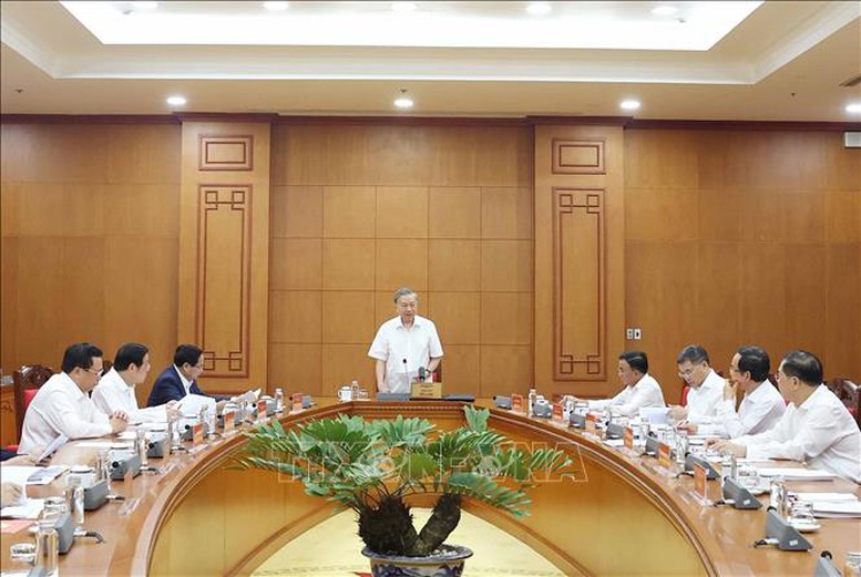 Tổng Bí thư Tô Lâm chủ trì buổi làm việc với Thường trực các Tiểu ban Đại hội XIV của Đảng cho ý kiến tiếp tục hoàn thiện các dự thảo Văn kiện trình Đại hội XIV của Đảng - Ảnh: TTXVN
