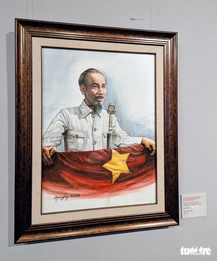 Triển lãm "Hồ Chí Minh - Chân dung một con người" giới thiệu đến công chúng 80 tác phẩm, trong đó có 59 bức tranh sơn dầu và màu nước của cố họa sĩ Việt kiều Đào Trọng Lý (1951-2024), cùng 21 bức tranh cổ động của các họa sĩ từ Trường cao đẳng Mỹ thuật Đông Dương, Khóa Mỹ thuật kháng chiến và những thế hệ tiếp theo.