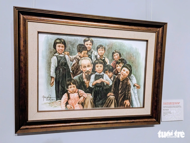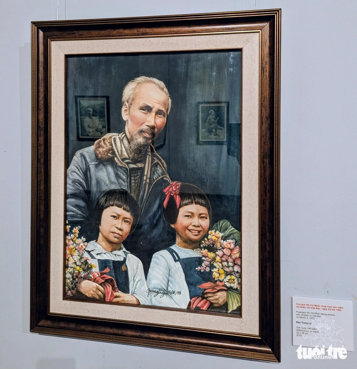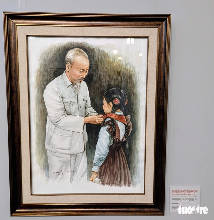 Tình cảm kính yêu sâu sắc của cố họa sĩ Đào Trọng Lý được thể hiện bằng ngôn ngữ hội họa tinh tế, dựa trên tư liệu lịch sử và cảm hứng từ tấm gương đạo đức của Bác Hồ.