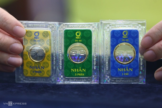 Vàng nhẫn trơn bán tại trụ sở SJC ở quận 3, tháng 3/2025. Ảnh: Quỳnh Trần