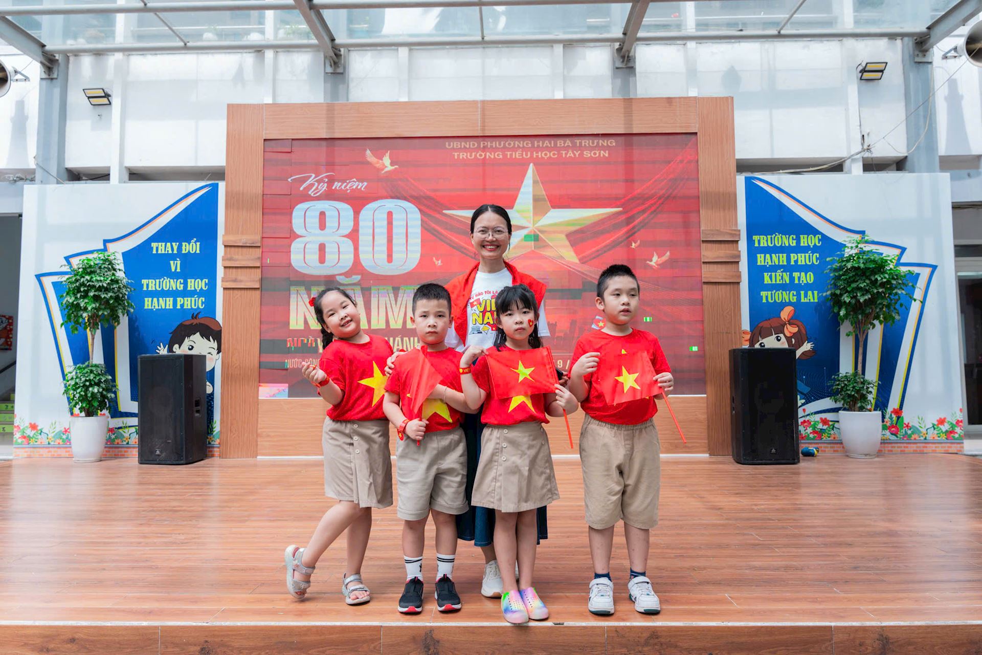 Trong sắc áo cờ đỏ sao vàng rực rỡ, các em học sinh lớp 2 mang theo nụ cười tươi sáng, tham gia nhiều hoạt động ý nghĩa để chào mừng ngày lễ trọng đại của dân tộc. Sân trường Tiểu học Tây Sơn trở nên rộn ràng, rực rỡ sắc màu với những tiết mục văn nghệ hồn nhiên, những động tác múa ngây thơ nhưng tràn đầy niềm tự hào. Tiếng hát trong trẻo cất lên không chỉ là niềm vui tuổi thơ, mà còn là thông điệp giản dị gửi gắm tình yêu Tổ quốc từ những trái tim non nớt.