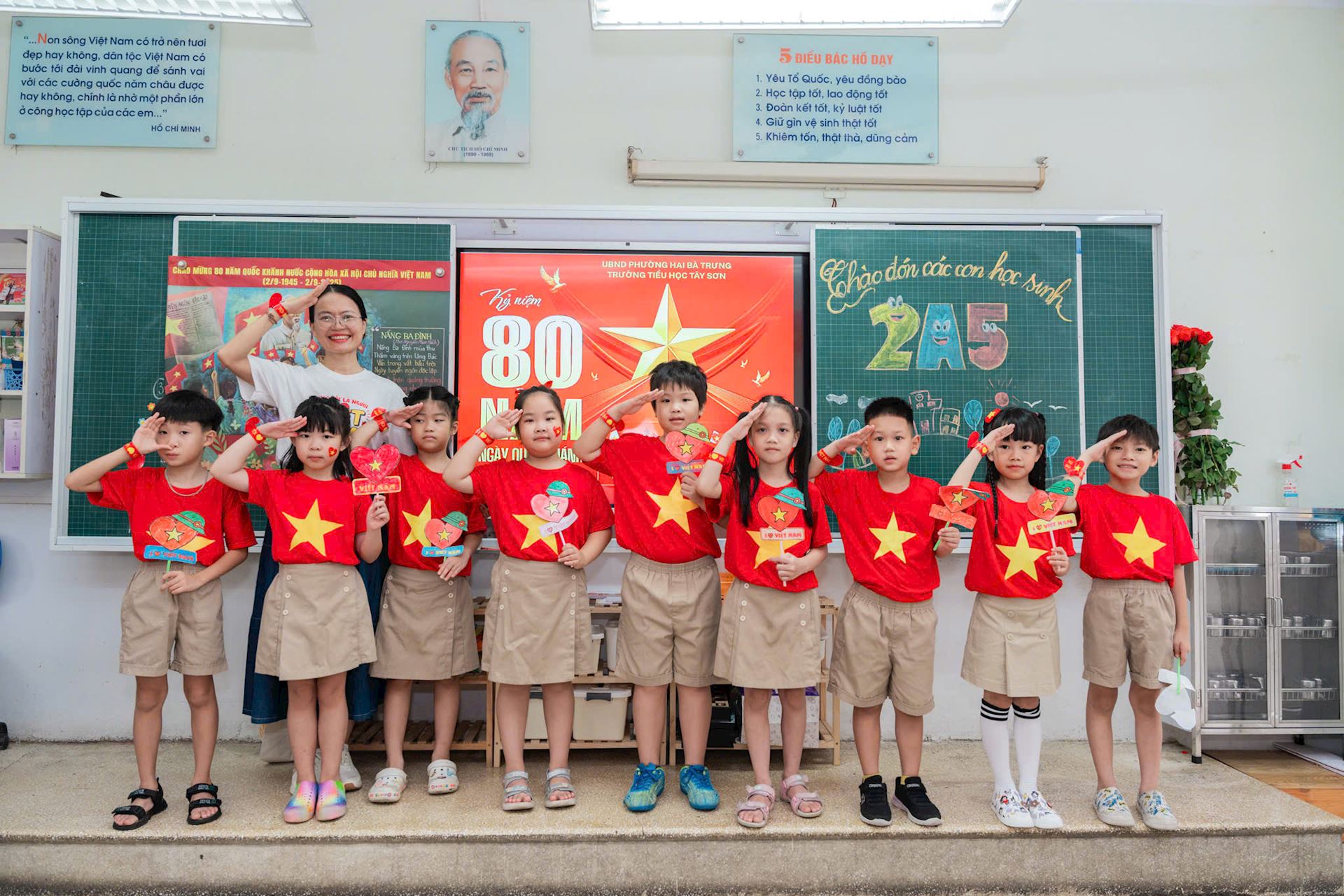 Trong không khí cả nước hân hoan kỷ niệm 80 năm Cách mạng Tháng Tám thành công và Quốc khánh 2/9, không chỉ ở các cơ quan, tổ chức, đoàn thể mà ngay trong từng lớp học, tình yêu Tổ quốc cũng đang được lan tỏa mạnh mẽ. Tại Trường Tiểu học Tây Sơn (60 Phố Lê Đại Hành, quận Hai Bà Trưng, Hà Nội), tình yêu ấy đã được truyền đi bằng một cách hồn nhiên, trong trẻo qua những câu chuyện, những chia sẻ của cô và trò.