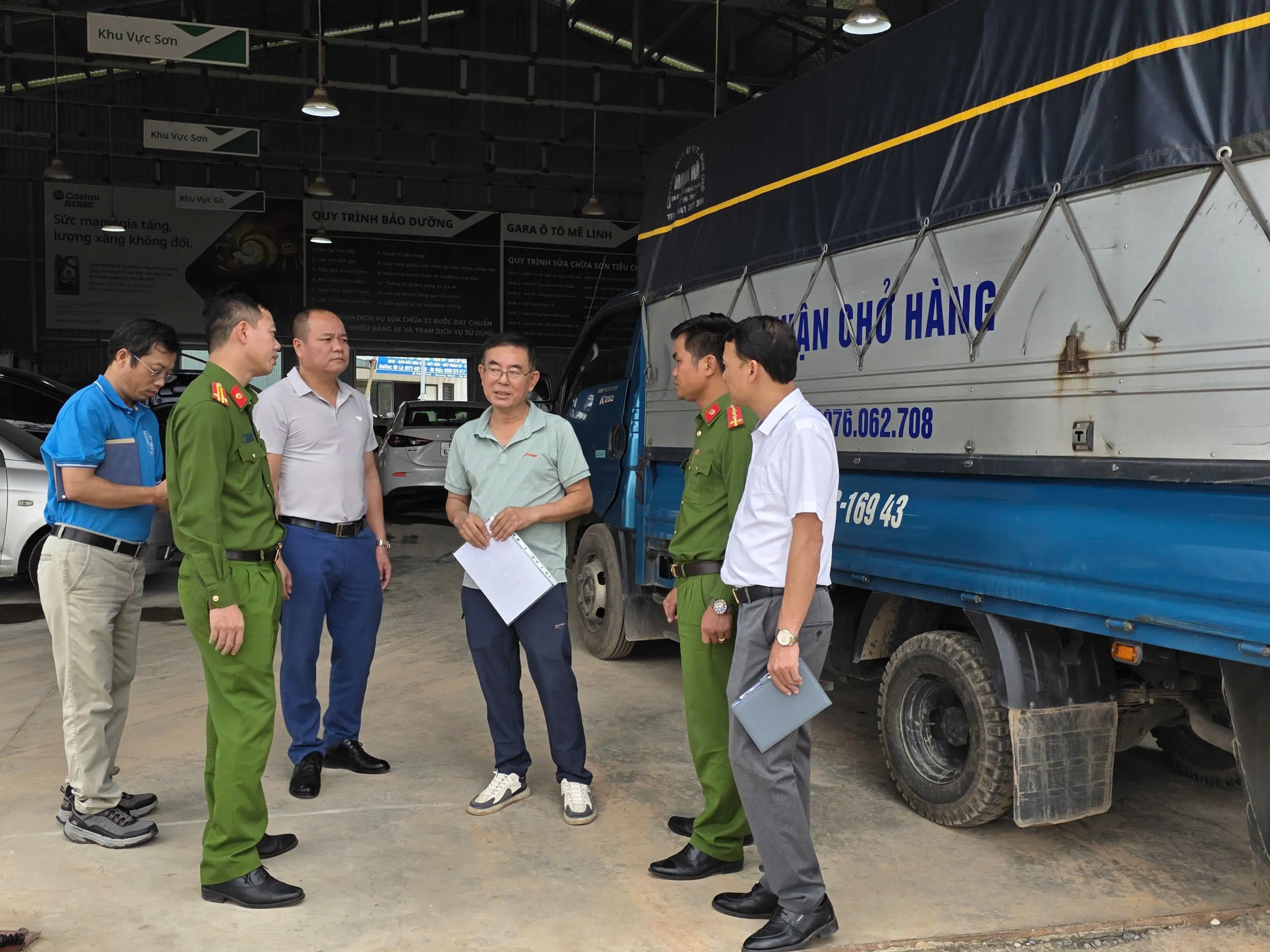 Đoàn kiểm tra tại một gara ôtô trên địa bàn xã Quang Minh.