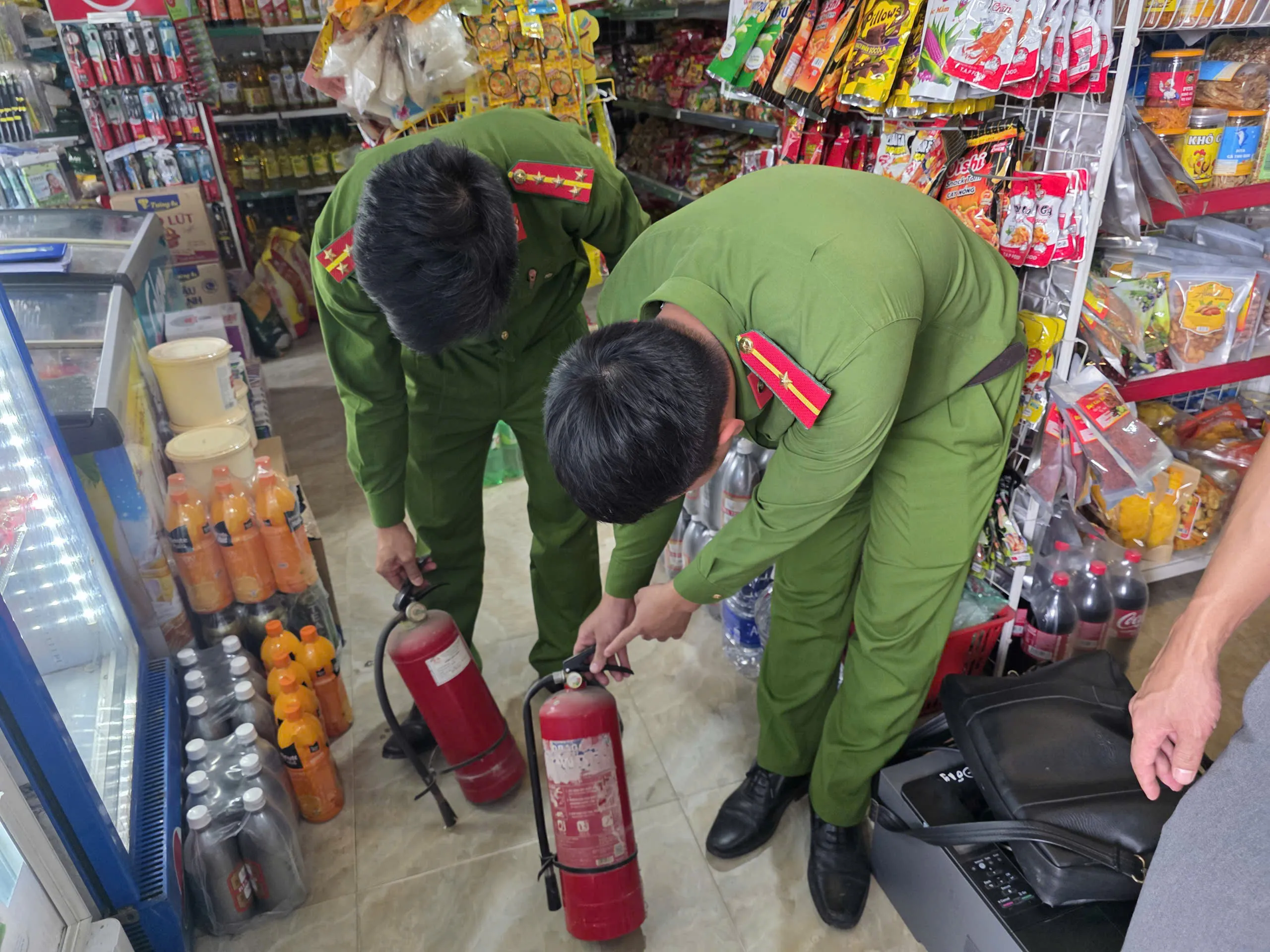 Tại một cửa hàng tạp hóa gần khu dân cư đông đúc, đoàn kiểm tra tiến hành kiểm tra khu vực kho chứa, quầy bán và hệ thống điện. UBND xã đã yêu cầu chỉnh sửa, khắc phục những vi phạm trong vòng 24 giờ, lập biên bản nhắc nhở và tuyên truyền trực tiếp cho hộ kinh doanh. Cán bộ công an xã đã hướng dẫn chủ cửa hàng cách bố trí hàng hóa an toàn, sử dụng thiết bị điện hợp lý và chuẩn bị phương án thoát hiểm khi có sự cố.