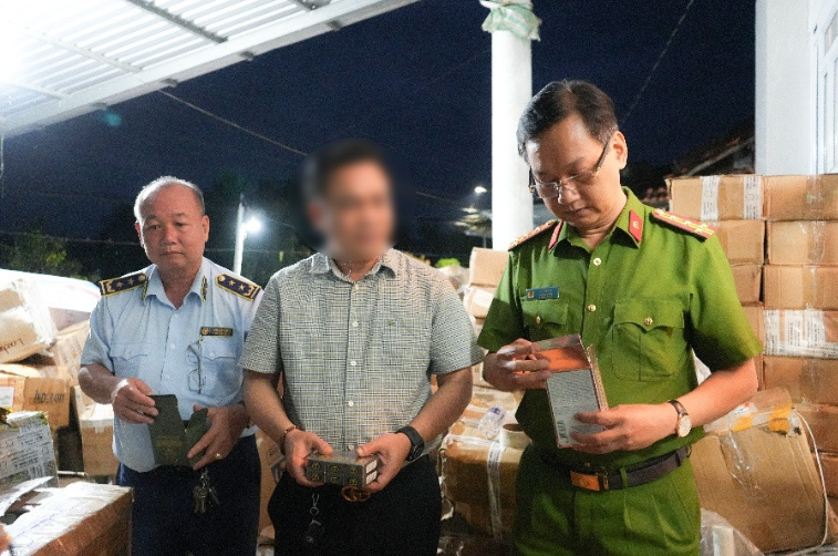 Quá trình khám xét, lực lượng chức năng tạm giữ số lượng lớn tang vật, gồm hơn 1.200 chai, hộp nước hoa thành phẩm mang các nhãn hiệu nổi tiếng như Allure, Acqua di Giò, Coco Chanel, Dior, Le Labo...; hơn 130 lít nước hoa đã pha chế sẵn; 646kg vỏ hộp mang nhãn hiệu nước hoa nổi tiếng; hơn 12.400 vỏ chai đựng nước hoa; hơn 18.000 nhãn hiệu nước hoa các loại cùng 4 máy chuyên dụng dùng để sản xuất nước hoa.